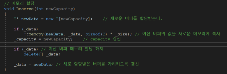 ::memcpy(newData, _data, sizeof(T) * _size); // 이전 버퍼의 값을 새로운 메모리에 복사