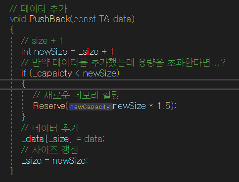 - 배열의 크기를 늘릴 때 일반적으로 현재 크기의 1.5배 또는 2배로 증가